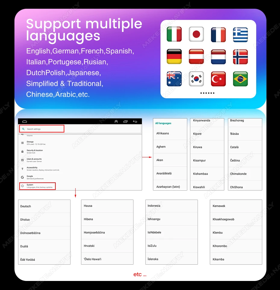 1.Support Multi-language: Chinese (Simplified), Russian, Spanish, Turkish, Russian, Hebrew, Italian, Chinese (Traditional), Arabic, French, German, English, Portuguese, Japanese etc.