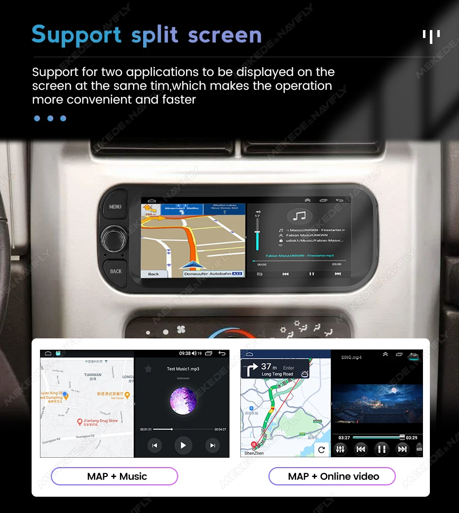 Control music or use hands-free calling function to ensure road safety ahead. The unit's steering wheel control (SWC) works with digital SWC.Support split screen