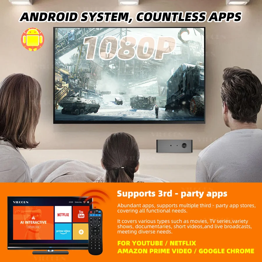 Enjoy crystal-clear 1080P visuals with this Android-based system, offering access to countless apps for streaming and entertainment, including Netflix, YouTube, and more.